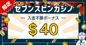 【 限定$40】セブンスピンカジノ入金不要ボーナスの受け取り方 セブンスピンカジノ入金不要ボーナスは、当サイト限定コードで登録することで$40を受け取ることができます。 ボーナス$40(通常は$25) 限定ボーナスコードOPEN40 賭け条...